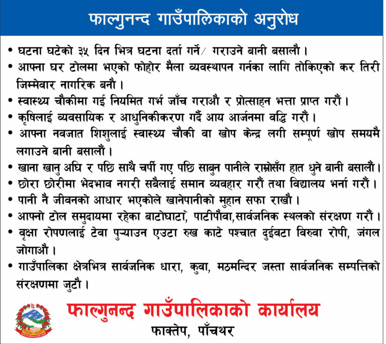 मंगल बेघा २९ जेठ, पाँचथर । सेवाग्राहीका लागि करदाता शिक्षा तथा अन्तरक्रिया कार्यक्रम बुधबार फिदिममा सम्पन्न भएको छ । फिदिम नगरपालिकाको आर्थिक सहयोगमा सामाजिक शैक्षिक तथा पर्यावरणीय विकास नेपाल (सिड)को आयोजनामा कार्यक्रम सम्पन्न भएको हो