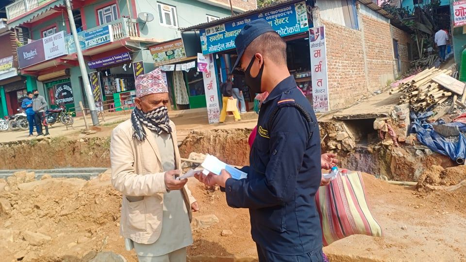 कोरोना रोकथामका लागि जिल्ला प्रहरी कार्यालय पाँचथरले स्वास्थ्य सचेतना एवं रोकथाम अभियानलाई तीव्रता दिएको छ । सदरमुकाम फिदिम बजार र जिल्लाका विभिन्न गाँउपालिका बाट आवजजावत गर्ने सवारी साधनका चालक र यात्रुहरुलाई प्रहरीले माक्स बाढेको हो । प्रहरीले ‘तपाइँको माक्स खोइ ?’ लेखिएको बोर्ड राखेर चालक र यात्रु र पैदल यात्री नागरिकहरुलाई माक्स हातमा दिँदै स्वास्थ्य मापदण्ड अपनाएर हिँड्न आग्रह गरिएको छ ।