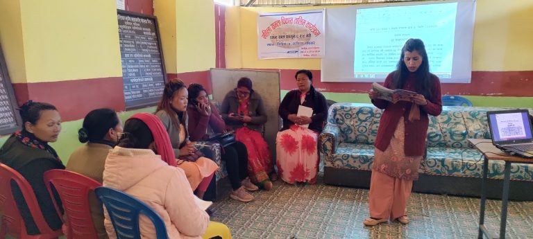 महिलाहरुको क्षमता एवं नेतृत्व विकासका लागि महिला अधिकार, संघ, प्रदेश र स्थानीय तहमा महिलाको प्रतिनिधित्वको ब्यवस्था, स्थानिय तहको संरचना र शासकिय स्वरुप, मुलुकी देवानी संहिता र मुलुकी अपराध संहितामा महिलाका कानूनी प्रावधान लगायतका विषयमा ज्ञान दिने उद्देश्यले सहजकर्ता युधिष्ठिरराज आमगाईले सहजीकरण गरेका हुन ।