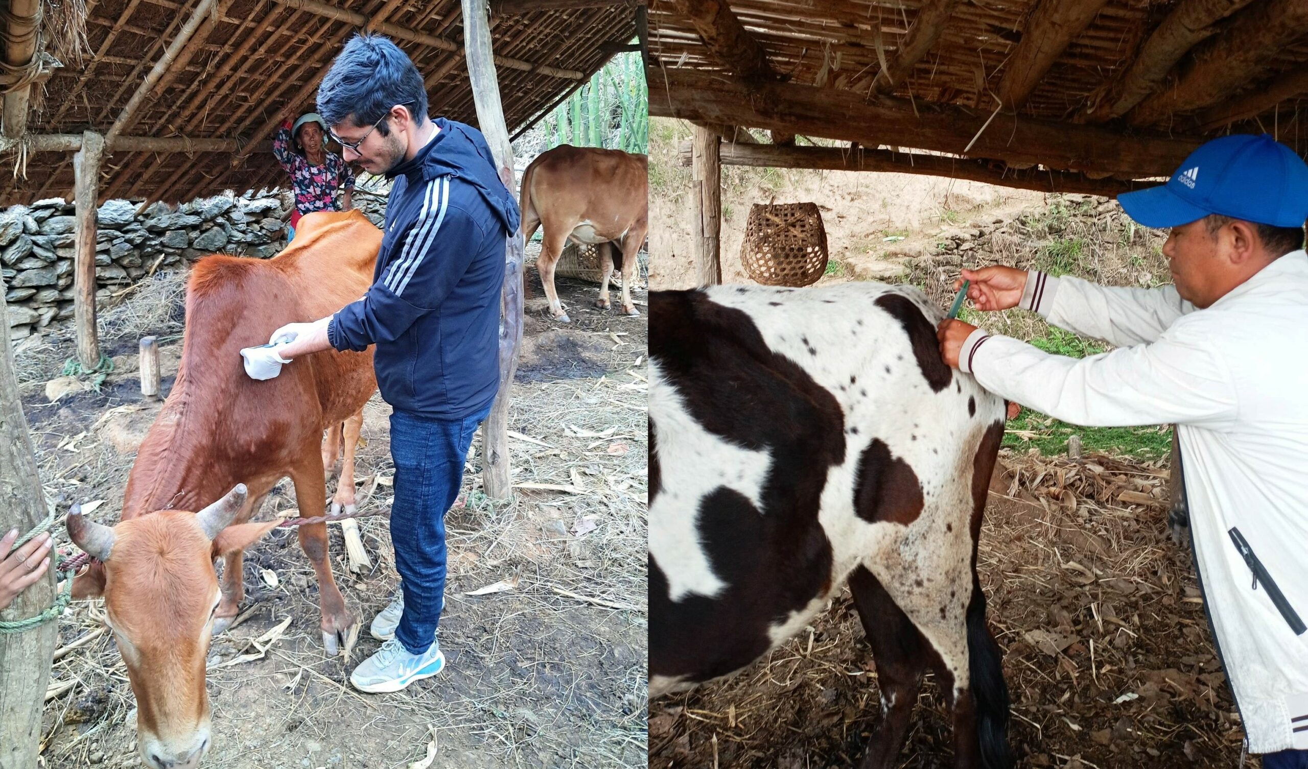 फोटोः पाँचथर कुम्मायक गाउँपालिका स्थित लम्पि स्किन संक्रमित गाई गोरुलाई पशु चिकित्सकद्वारा उपचार गरिदै ।