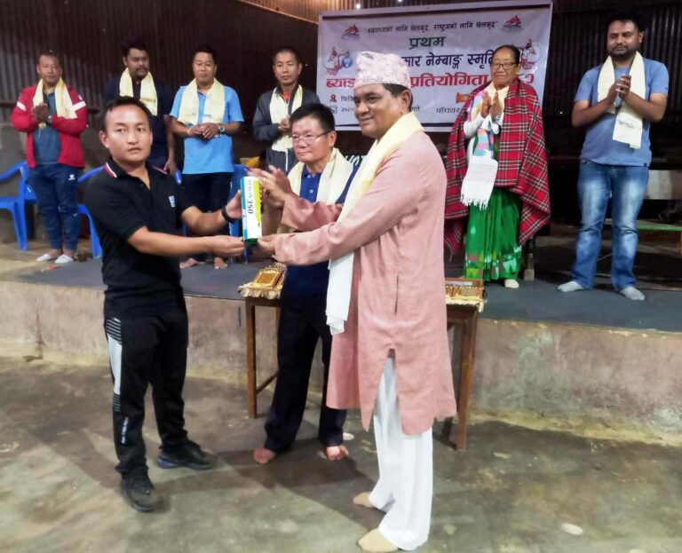पाँचथर । प्रथम खड्ग कुमार नेम्बाङ स्मृति ब्याडमिन्टन प्रतियोजिता २०८० को उपाधि तेह्रथुम आठराईका खेलाडीले चुमेका छन् । आठराईका दिनेश कन्दङ्वा र देवेन्द्र उप्रेतिको जोडिले आईतबार सम्पन्न फाईनलमा फिदिमका प्रविनहाङ योङहाङ र उमेश श्रेष्ठको जोडिलाइ पराजित गर्दै उपाधि हात पारेका हुन ।