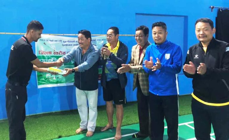 ब्याडमिन्टन संघ पाँचथरको आयोजनामा दुई दिन सम्म सञ्चालित प्रतियोगिताका विजेता तथा उपविजेता खेलाडीहरुलाई जिल्ला खेलकुद विकास समितिका अध्यक्ष सन्तोष मोक्तान, शिक्षा विकास तथा समन्वय इकाईका प्रमुख यूगमणी सवेहाङ, पूर्व अध्यक्ष रामबीर राई, संघका सल्लाहकार डीएस सुब्बा, खड्ग थापा मगर लगायतले पुरस्कार वितरण गर्नु भएको थियो । प्रतियोगितामा ३३ टिमको सहभागिता रहेको संघका अध्यक्ष तेजबहादुर तुम्बापोले जानकारी दिनु भयो ।