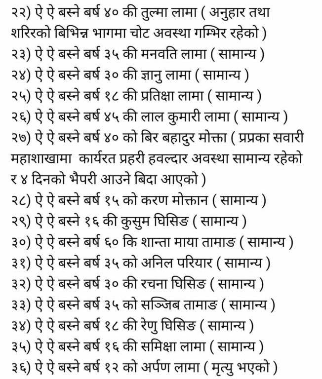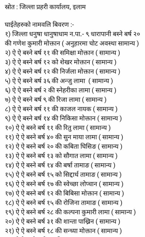 मृतक तथा घाईतेहरुको विवरण