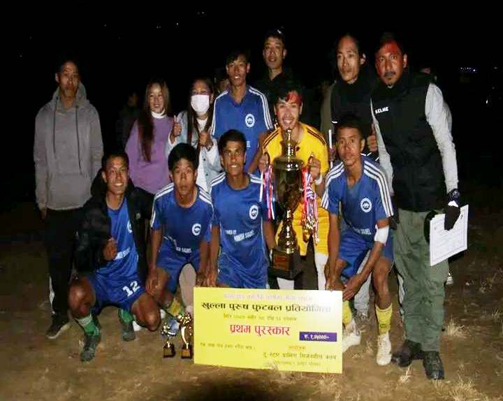 नवमीडाँडा । पाँचथरको फाल्गुनन्द गाउँपालिका २ इम्बूङमा सम्पन्न खुल्ला नकआउट पुरुष फुट्बल प्रतियोगिताको उपाधी तिजोक यूवा क्लव नवमीडाँडाले हात पारेको छ ।
