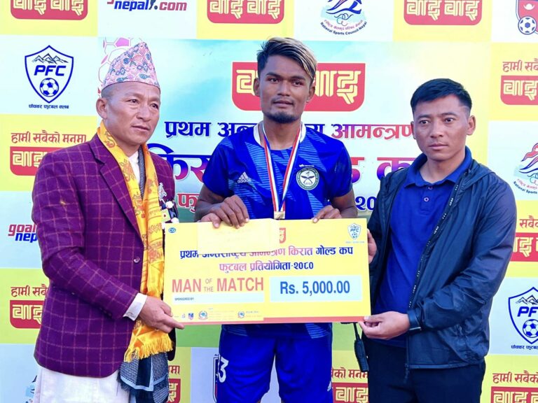 म्यान अफ दी म्याच बनेका मोरङका अभिशेष लिम्बूले ५ हजार रुपैयाँ प्राप्त गरे । उनलाई नेपाली कांग्रेस जिल्ला कार्य समितिका सहसचिव गजेन्द्र राईले पुरस्कार हस्तान्तरण गरे । अब हुने सेमिफाइनलमा मोरङले आयोजक पाँचथर फुटबल क्लबको सामना गर्नेछ ।
