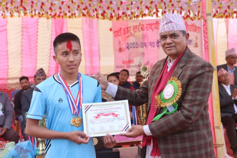 पाँचथर । पाँचौं फिदिम नगर स्तरीय राष्ट्रपति रनिङ शिल्ड खेलकुद प्रतियोगिता २०८० को उपाधी फिदिम माविले उचालेको छ । फिदिम माविको खेल मैदानमा बिहिबार सम्पन्न प्रतियोगितामा सहभागी २२ विद्यालयहरुलाई पछि पार्दै फिदिम माविले उपाधी उचालेको हो ।