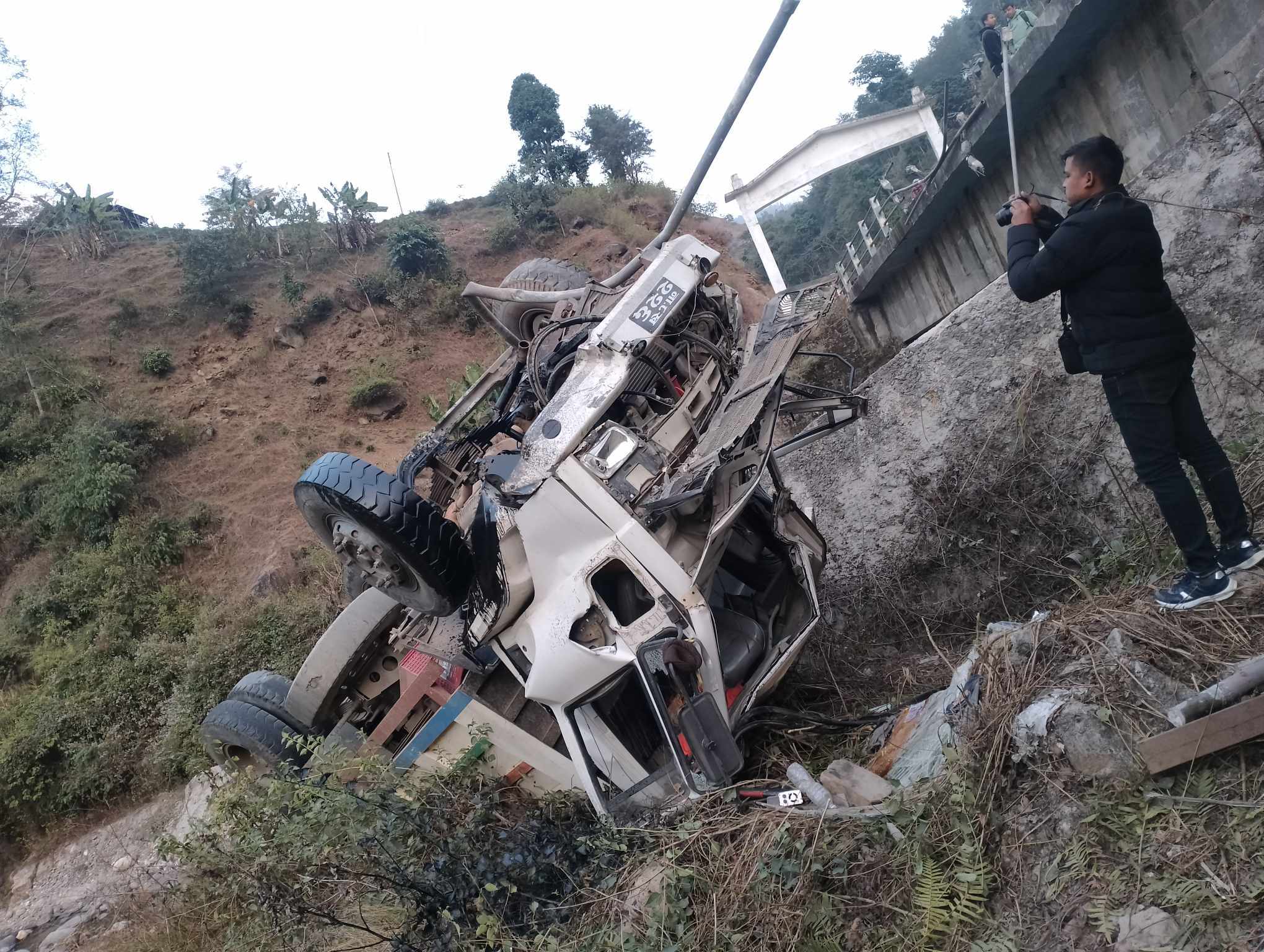 नांगिनबाट फिदिमतर्फ आउदै गरेको ना ८ ख २२६ नम्बरको खाली टिफर आफै अनियन्त्रीत भई फेमे खोलाको पक्कि पुलवाट खाेलामा झरी दुर्घटना भएकाे हाे । टिफरले करिब ७० फिट बार भत्काई पुलबाट अन्दाजी १६ फिट तल खोलामा झरेकाे थियाे।