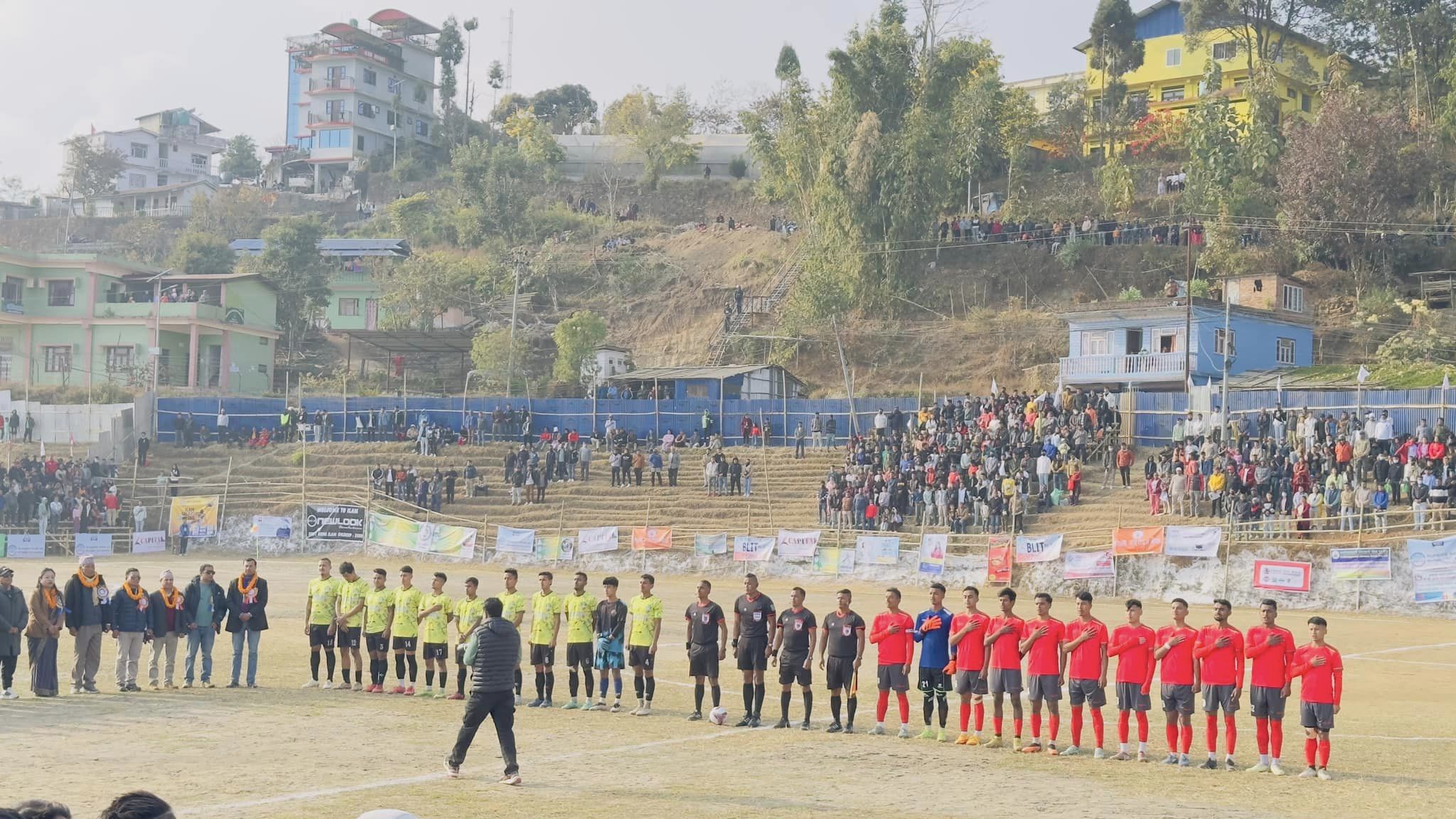 पहिलो खेलमा जित हाँसिल गर्ने क्रममा राष्ट्रिय फुटबल टोली तथा त्रिभुवन आर्मी फुटबल क्लबका फरवार्ड नवयुग श्रेष्ठले ह्याट्रिक गरे । उनले ५१ औं, ६४ औं र ८० औं मिनेटमा गोल गर्दै ह्याट्रिक पूरा गरेका थिए । पहिलो हाफको ११ औं मिनेटमा आयोजक टोलीले अग्रता लिएको थियो । आयोजकका लागि पहिलो गोल उत्सव राईले गरेका थिए ।