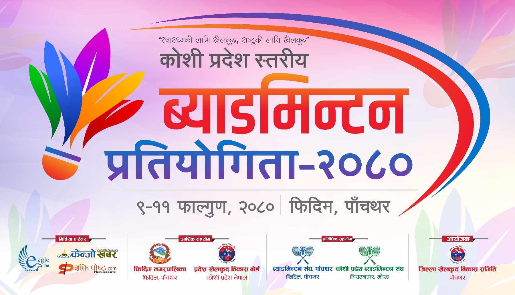 १२ फागुन, पाँचथर । जिल्ला सदरमुकाम फिदिममा शुक्रबार सम्पन्न प्रदेश स्तरीय ब्याडमिन्टन प्रतियोगितावाट ६ जना खेलाडी छनोट भएका छन् ।