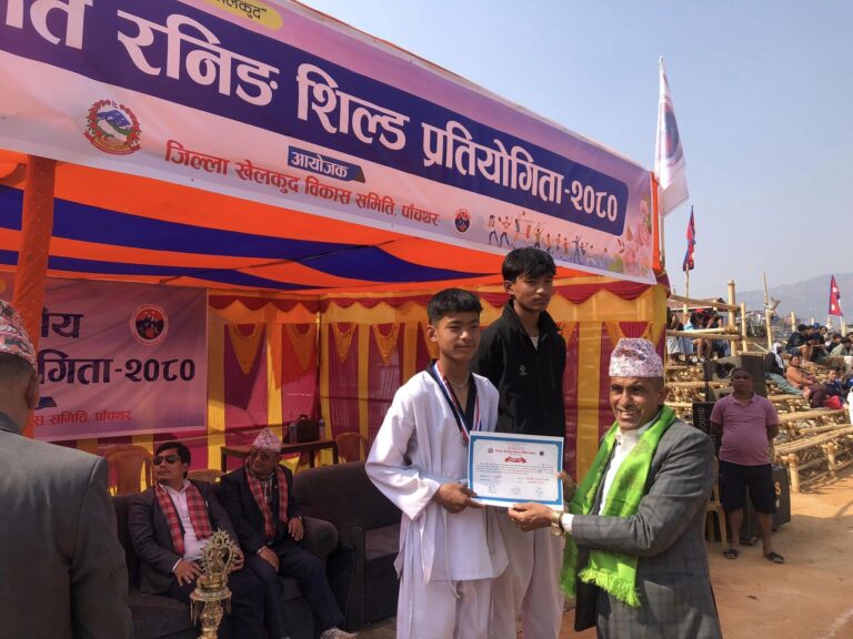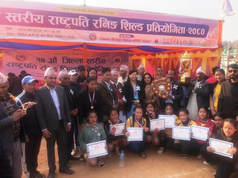 फागुन ३०, पाँचथर । १४ औं जिल्ला स्तरीय राष्ट्रपति रनिङ शिल्ड प्रतियोगिता- २०८० को उपाधी फिदिम नगरपालिकाको पोल्टामा परेको छ ।