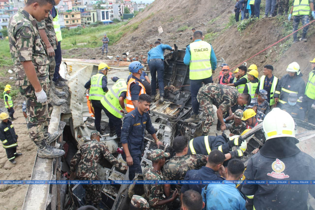 मृतकहरुको शव त्रिवि शिक्षण अस्पतालमा जम्मा गरी पोष्ट मार्टम सुरु गरिएको छ । पोस्टमार्टम गर्न त्रिवि शिक्षण अस्पताल, पाटन स्वास्थ्य विज्ञान प्रतिष्ठान र भक्तपुर अस्पतालका चिकित्सक खटिएका छन् । शव जलेर चिनिने अवस्थमा नभएकाले हुलिया, फिंगर प्रिन्ट लगायतका आधारमा पोस्टमार्टम गर्न सुरु गरिएको अस्पतालले जनाएको छ । सो अस्पताल बाहिर ठुलो संख्यामा मृतकका आफन्तहरु भेला भएका छन् ।