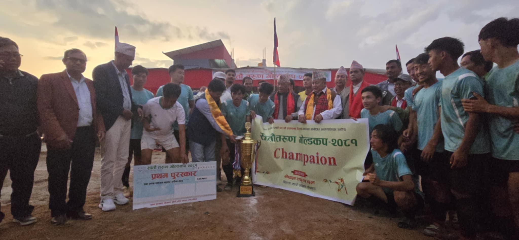 १३ कार्तिक, पाँचथर । सातौं तरुण गोल्डकप फुटबल प्रतियोगिता- २०८१ को उपाधि तुम्बेवा गाउँपालिकाको पोल्टामा परेको छ । फिदिम माविको खेल मैदानमा मंगलबार भएको फाईनलमा फिदिम नगरपालिकालाई १–० ले पराजित गर्दै तुम्बेवाले उपाधि कब्जा गरेको हो ।