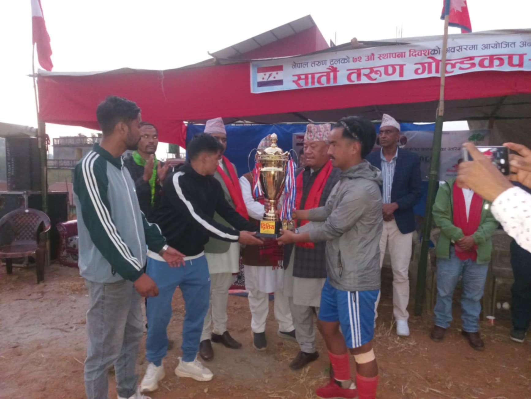 प्रतियोगिताका विजेता, उपविजेता तथा विधागत रुपमा पुरस्कार प्राप्त गर्ने खेलाडीहरुलाई समापन समारोहका प्रमुख अतिथि नेपाली काँग्रेसका सहमहामन्त्री भिष्मराज आङदेम्बे, पाँचथरका सभापति रुपनारायण जवेगु, निवर्तमान सभापति नरेन्द्रकुमार केरुङ, फिदिम नगरपालिकाका प्रमुख मित्रप्रसाद काफ्ले, तरुण दलका केन्द्रीय सदस्य धनराज तुम्बापो लगायतका अतिथिहरुले पुरस्कार वितरण गरेका थिए ।