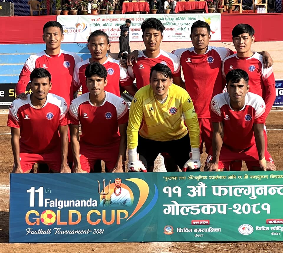 ९ पौष, पाँचथर । ११ औं संस्करणको फाल्गुनन्द गोल्डकप फुटबल प्रतियोगिता २०८१ मा न्यु स्टार क्बल, सुनसरी माथि गोल वर्षाउँदै मछिन्द्र फुटबल क्बल, काठमाण्डौं सेमिफाईनलमा प्रवेश गरेको छ ।