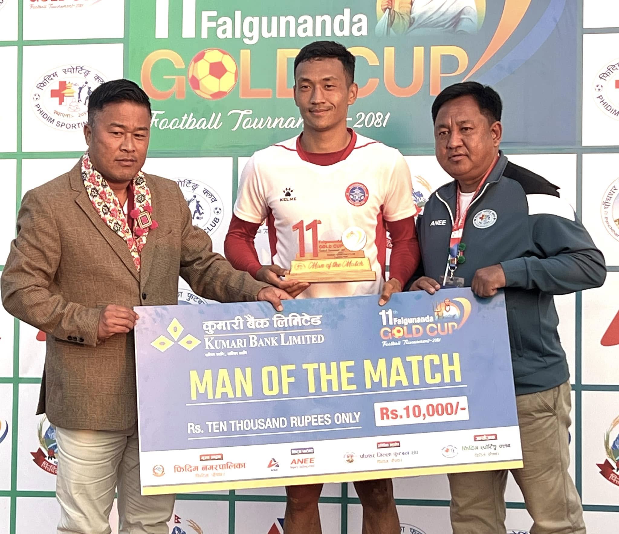 आजको खेलको म्याद अफ दि म्याच मछिन्द्रका सनीश श्रेष्ठ घोषित भए । उनलाई जिल्ला खेलकुद विकास समितिका अध्यक्ष सन्तोष मोक्तानले नगद १० हजार र ट्रफी हस्तान्तरण गरे ।