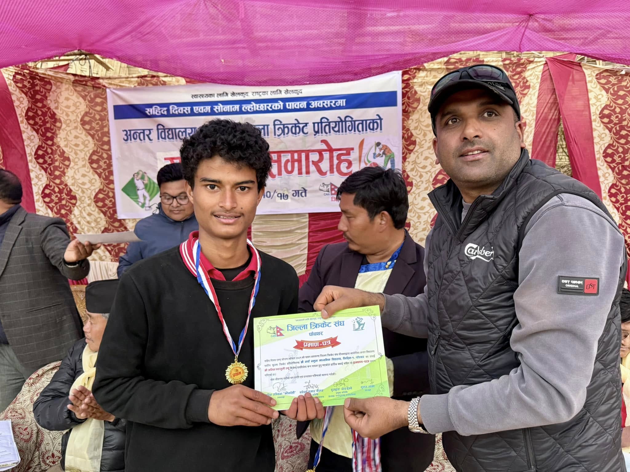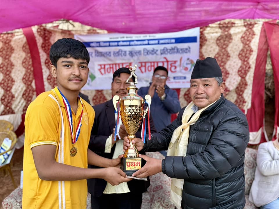 विजेता तथा उपविजेता खेलाडीहरुलाई प्रतियोगिता समापन सत्रका प्रमुख अतिथि फाल्गुनन्द गाउँपालिकाका अध्यक्ष बृजहाङ आङदेम्बे, नेपाली काँग्रेसका निवर्तमान सभापति नरेन्द्रकुमार केरुङ, शिक्षा विकास तथा समन्वय इकाईका प्रमुख युमणी सवेहाङ, नेपाल उद्योग वाणिज्य महासंघका केन्द्रीय सदस्य दिपक नेपाल लगायतका अतिथिहरुले पुरस्कार वितरण गरेका थिए ।