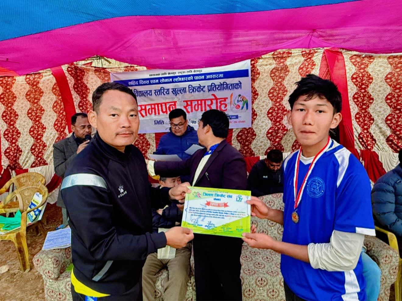 जिल्ला क्रिकेट संघ पाँचथरले आयोजना गरेको प्रतियोगिताको च्याम्पियन बनेको नमुना माविले १० हजार नगद, ट्रफी, मेडल र प्रमाण पत्र हात पार्याे । यसै गरी, उपविजेतामा सीमित फिदिम माविले ७ हजार ५ सय नगद, ट्रफी, मेडल र प्रमाण पत्रमा चित्त बुझायो ।