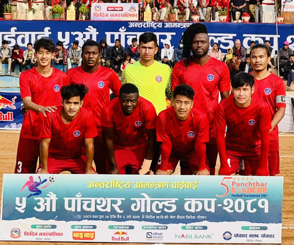 २६ फागुन, पाँचथर । फिदिममा जारी अन्तराष्ट्रिय आमन्त्रण वाइवाइ पाँचौं पाँचथर गोल्डकप फुटबल प्रतियोगिता– २०८१ मा हिमालयन शेर्पा क्लब, काठमाण्डौंलाई हराउँदै मछिन्द्र फुटबल क्लब, काठमाण्डौं सेमिफाईनल प्रवेश गरेको छ ।