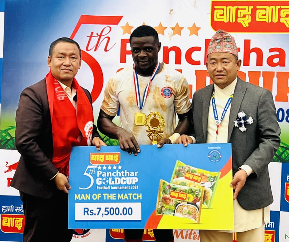 पहिलो सेमिफाईनलको म्यान अफ दि म्याच मछिन्द्रका स्टेफेन घोषित भए । उनलाई कार्यक्रमका प्रमुख अतिथि नेकपा माओवादी केन्द्रका प्रदेश कमिटि अध्यक्ष हर्कबहादुर नेम्बाङ ‘मिक्सो’ र आयोजक पाँचथर क्लबका अध्यक्ष कमल तुम्रोकले नगद ७ हजार ५ सय र ट्रफी हस्तान्तरण गरे ।