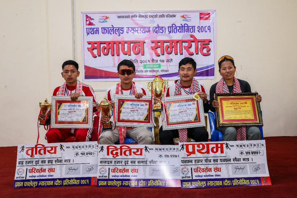 परिवर्तन संघ फालेलुङको आयोजनामा भएको म्याराथनका विजेताहरुलाई आइतबार एक कार्यक्रमको आयाेजना गरी पुरस्कार वितरण गरिएकाे थियाे । म्याराथनमा देशभरीका धावकहरुकाे सहभागिता रहेकाे थियाे ।