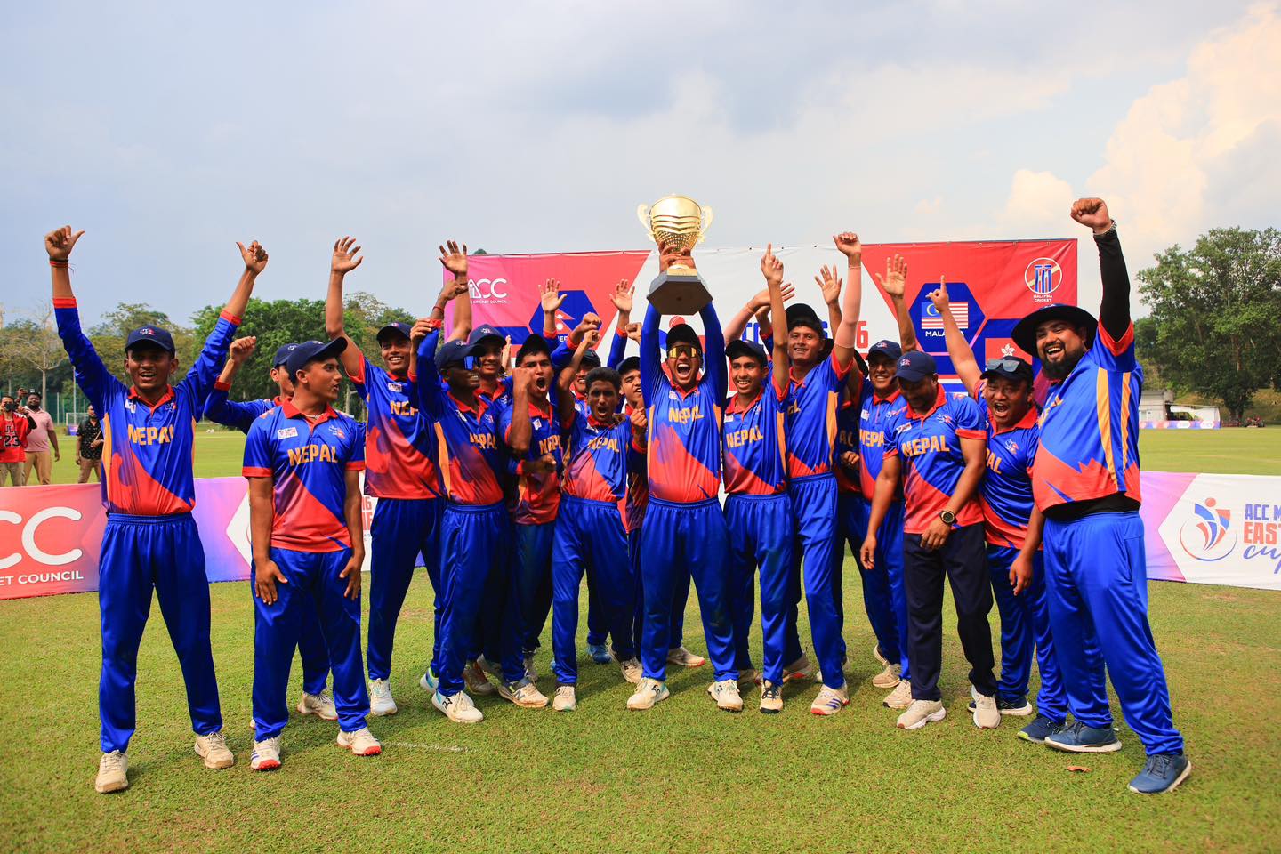 २१ असार, पाँचथर । नेपालले एसीसी यू–१६ इस्टजोन कप क्रिकेट प्रतियोगिताको उपाधि जितेको छ । मलेसियामा शनिबार सम्पन्न फाइनलमा सिंगापुरलाई २ विकेटले हराउँदै नेपालले उपाधि हात पारेको हो ।