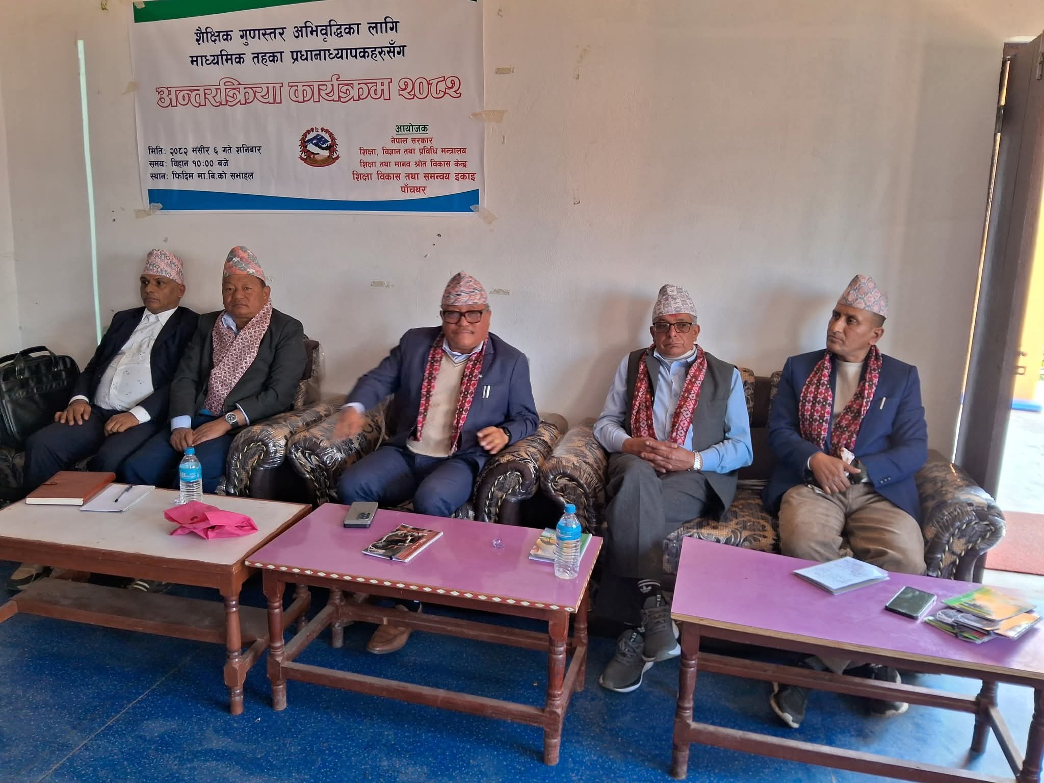 मंसिर–७, पाँचथर । शैक्षिक गुणस्तर अभिवृद्धिका लागि माध्यमिक तहका प्रधानाध्यापकहरुसँग अन्तरक्रिया कार्यक्रम पाँचथरको सदरमुकाम फिदिममा आईतबार सम्पन्न भएको छ ।