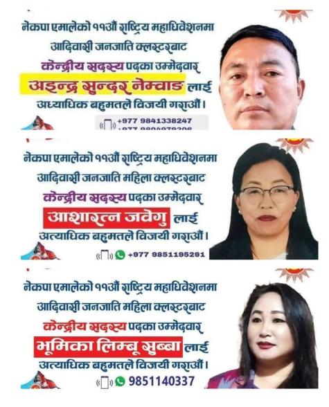 पाँचथर । एमाले महाधिवेशनका लागि पाँचथरका ३ जना केन्द्रिय सदस्य पदमा भिड्ने देखिएको छ । निवर्तमान के. स. अईन्द्र सुन्दर नेम्वाङ आदिवासी जनजाति क्लष्टरबाट केन्द्रीय सदस्य पदका लागि उम्मेदवार बनेका छन ।त्यस्तै आदिवासी जनजाति महिला क्लष्टरबाट केन्द्रीय सदस्य पदका लागि पाँचथरे नेतृदय आशारत्न जवेगु र
