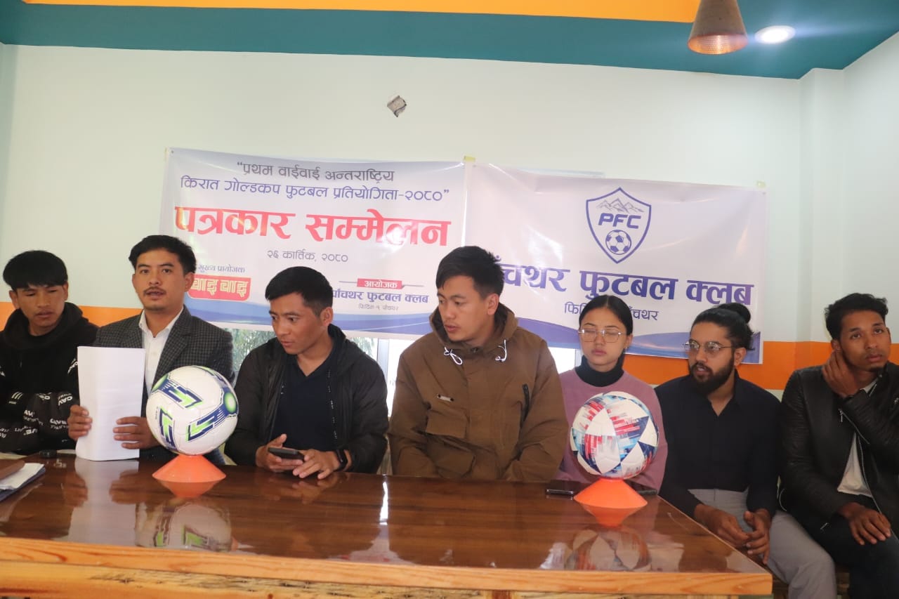 मंगल बेघा पाँचथर । प्रथम वाईवाई अन्तराष्ट्रिय किरात गोल्डकप– २०८० आगामी मंसिर १५ गतेदेखि पाँचथर जिल्लाको सदरमुकाम फिदिममा आयोजना हुने भएको छ । पाँचथर फुटबल क्लबको आयोजनामा हुने प्रतियोगिताका सम्बन्धमा फिदिममा आईतबार पत्रकार सम्मेलन आयोजना गरी जानकारी दिइएको हो । प्रतियोगितामा दार्जेलिङ एफ.सि. भारत, हिमालयन