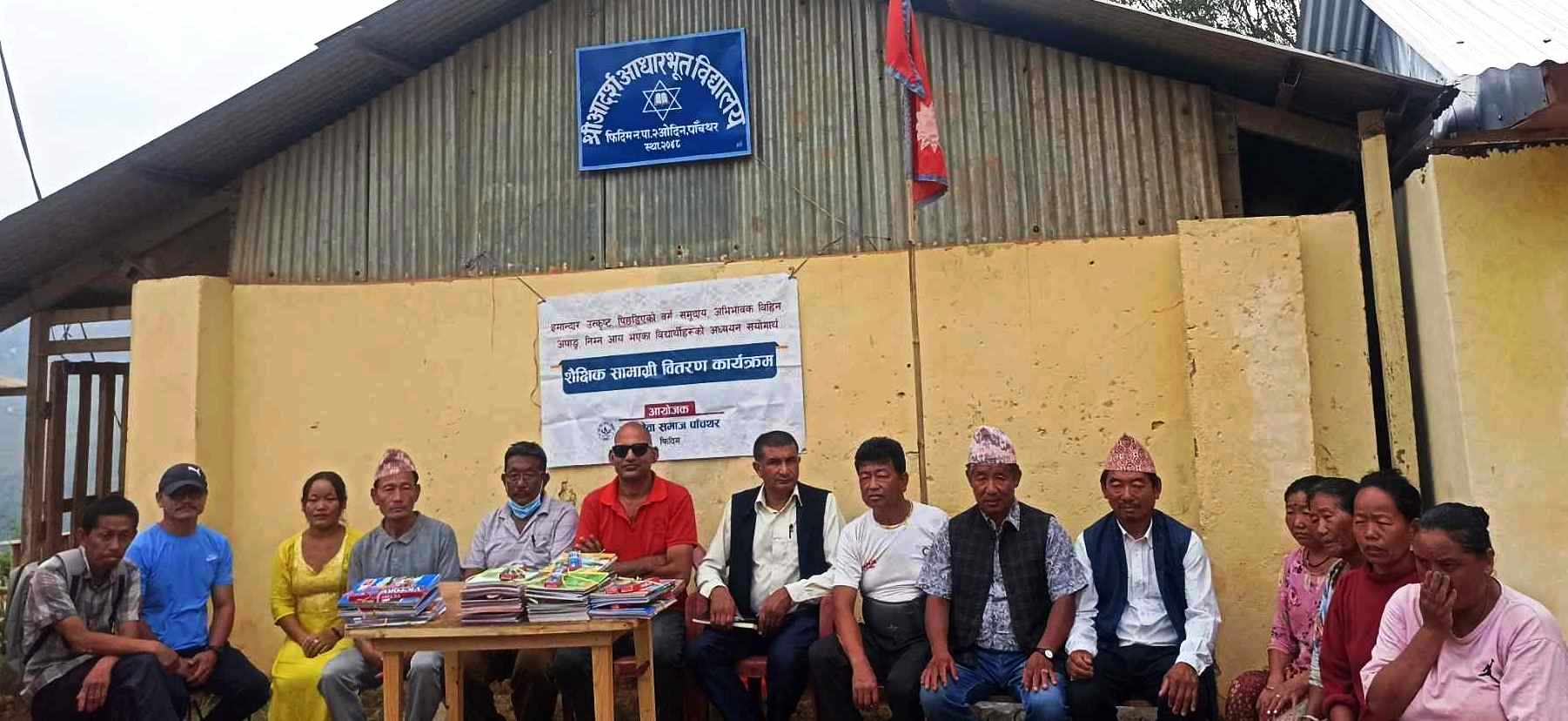 नारायण तुम्बापो फिदिम । जनसेवा समाज पाँचथरले फिदिम–२, ओदीन स्थित आदर्श आधारभूत विद्यालयका आवासीय विद्यार्थीलाइ शैक्षिक सामग्री हस्तान्तरण गरेको छ । समाजका अध्यक्ष राजेन्द्र अधिकारीले आवासीय कक्षा व्यवस्थपन समिति संयोजक गंगा इङ्वा लिम्बूलाई विहीबार शैक्षिक सामग्री प्रदान गर्नुभयो ।फिदिमको सापकोटा पुस्तक पसलका प्रोपाइटर नोम सापकोटामार्फत