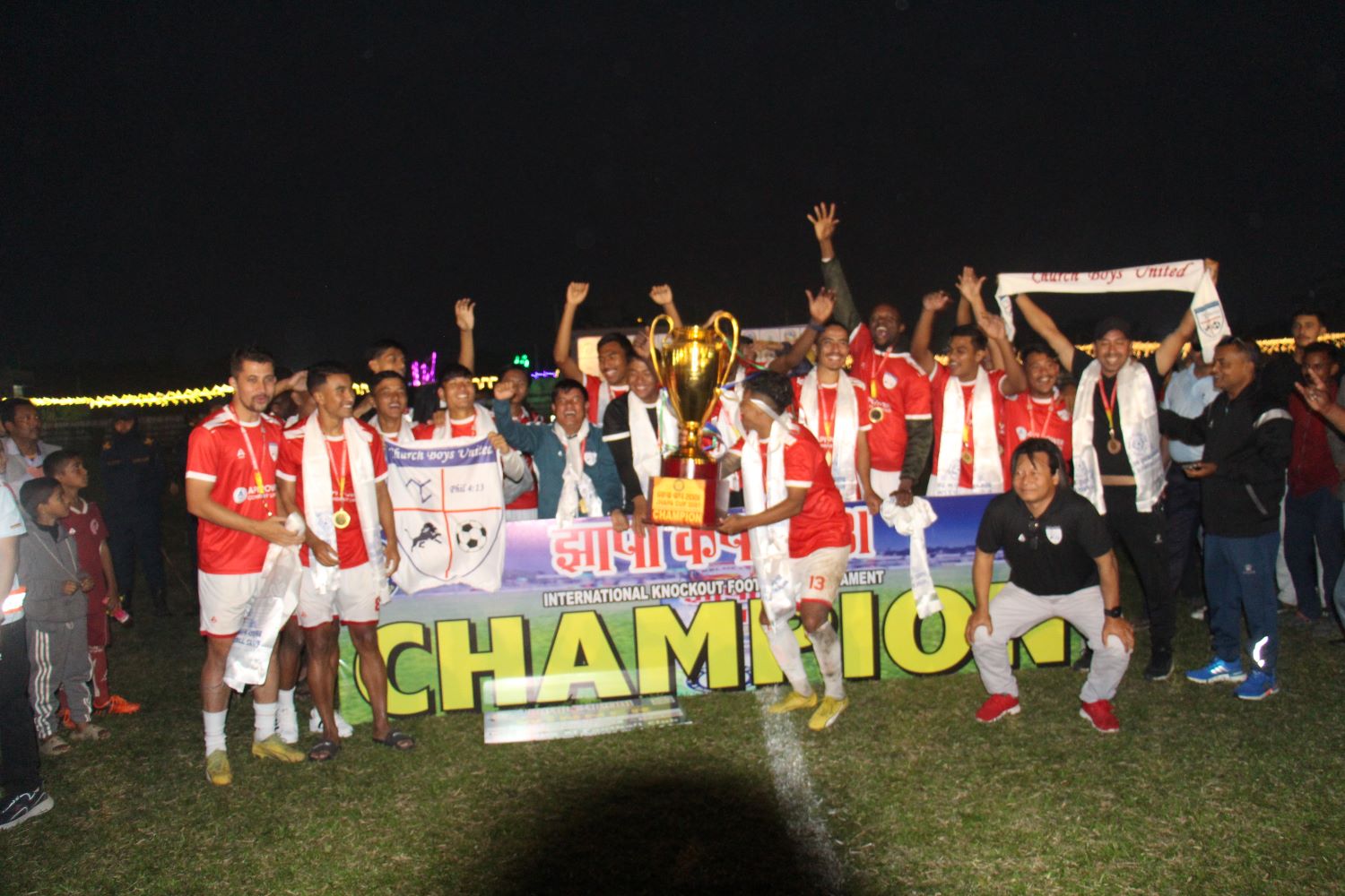 हिमाल खरेल, बिर्तामोड ए डिभिजन लिग च्याम्पियन चर्च ब्वाइज युनाइटेडले झापा कपको पहिलो संस्करणको उपाधि जितेको छ । चर्च ब्वाइजले सोमवार फाइनलमा एनआरटीलाई फाइनलमा ३-१ ले हरायो । चर्च ब्वाइजले जितसँगै १० दिनअघि इलाम गोल्डकपको फाइनलमा एनआरटीसँग व्यहोरेको हारको बदला लिएको छ । इलाम गोल्डकपको फाइनलमा