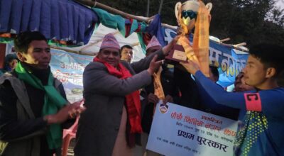 मंगल बेघा पाँचथर । याङवरक गाउँपालिकाको प्रथम उपाध्यक्ष कप अन्तरपालिका स्तरीय पुरुष भलिबल प्रतियोगितामा हिलिहाङ र याङवरक गाउँपालिका सेमिफाईनलमा प्रवेश गरेका छन् । याङवरक गाउँपालिका ६ स्थित नागीमा सोमबार सम्पन्न पहिलो खेलमा मिक्लाजुङ विरुद्ध कठिन जित हात पार्दै हिलिहाङ सेमिफाईनल प्रवेश गरेको हो । हिलिहाङले