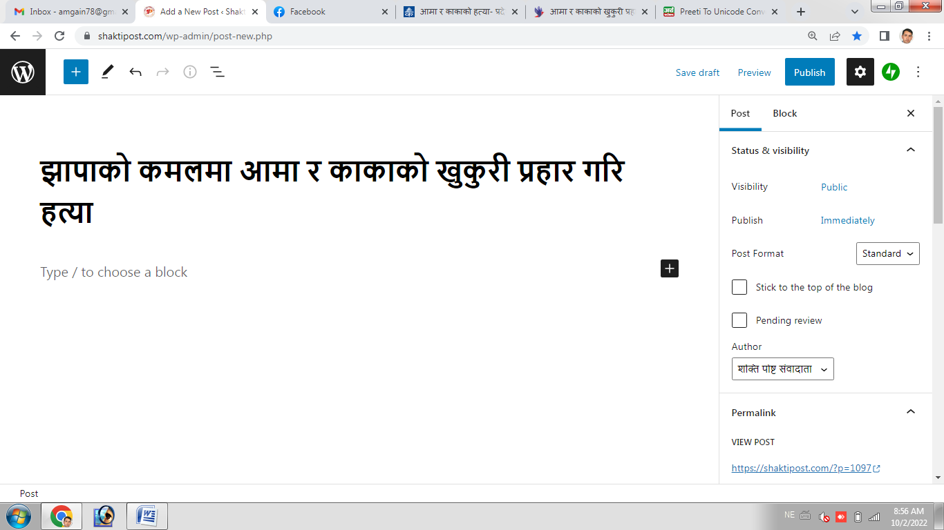 प्रकाशित मिति : १६ आश्विन २०७९, आइतबार ८ : ५६ बजे